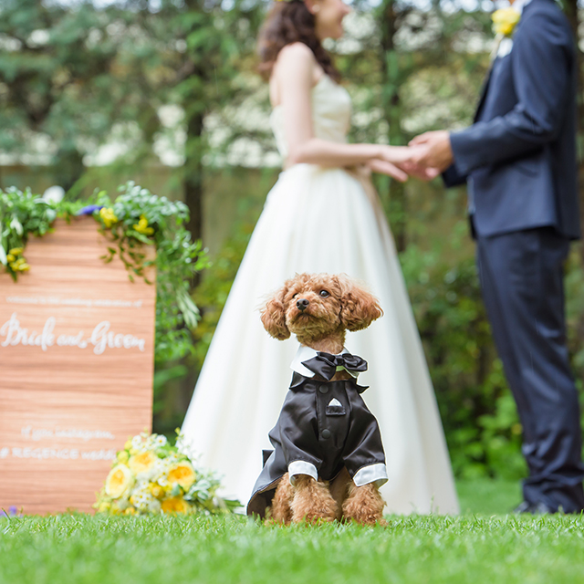 家族同然の愛犬と一緒に結婚式を愉しみたい!!そんなおふたりへおすすめのスペシャルプラン ″ワンダフル” 。リージェンスは愛犬とのワンダフルウェディングを応援します。